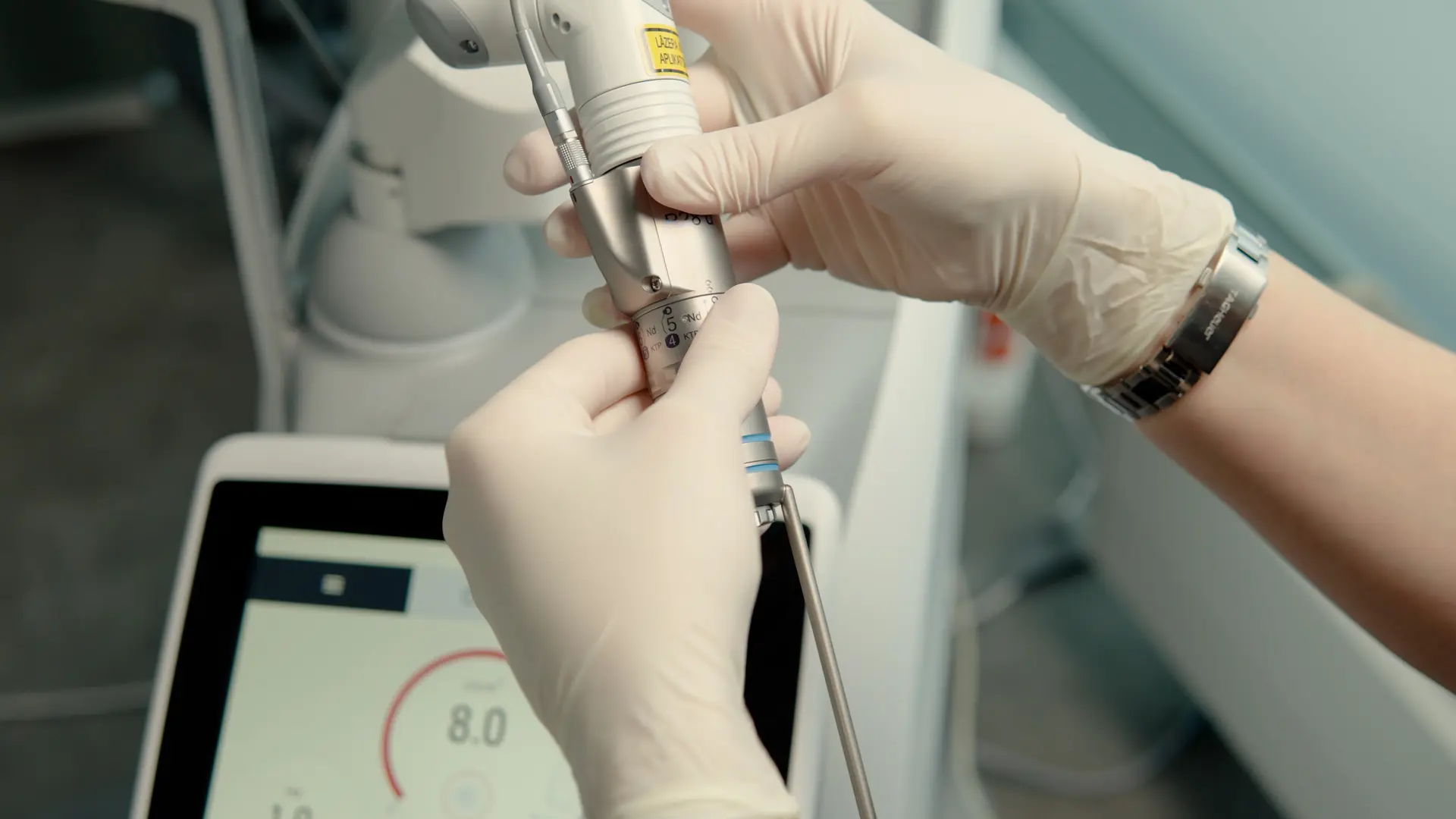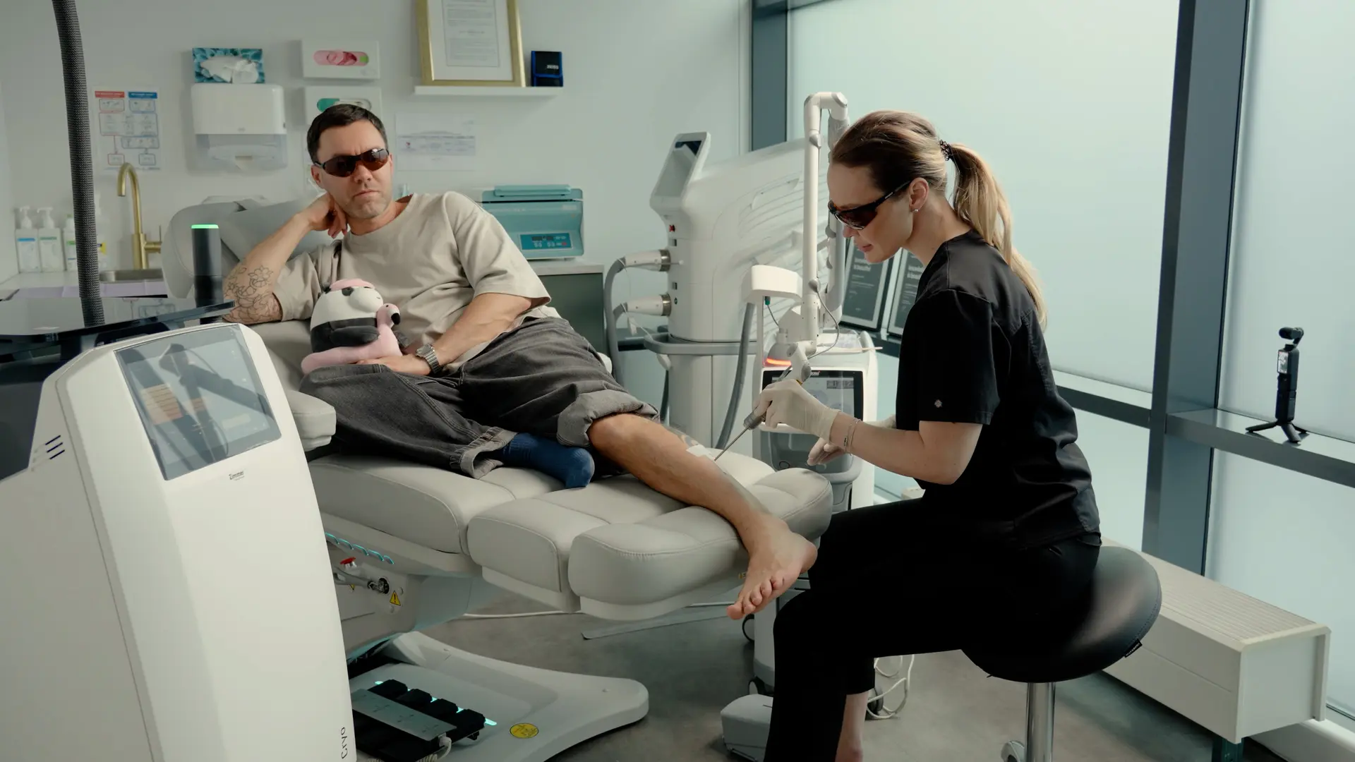 И пациент, и врач должны носить специальные защитные очки в процедурной комнате.